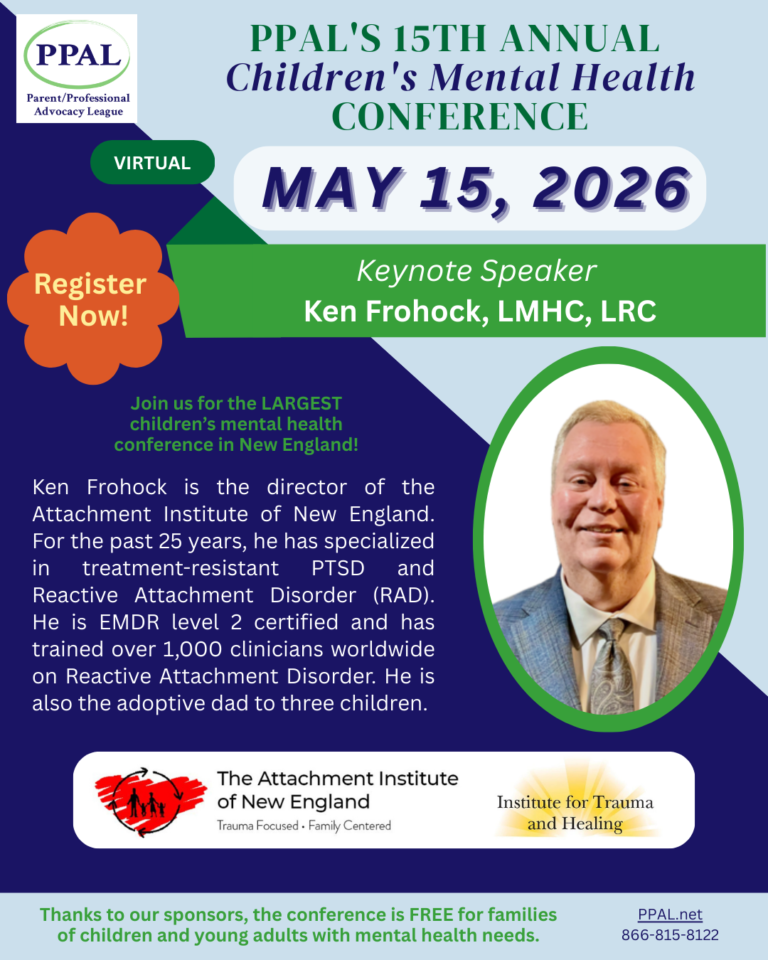 PPAL’s conference is the LARGEST children’s mental health conference in New England. This conference is for both families and professionals.